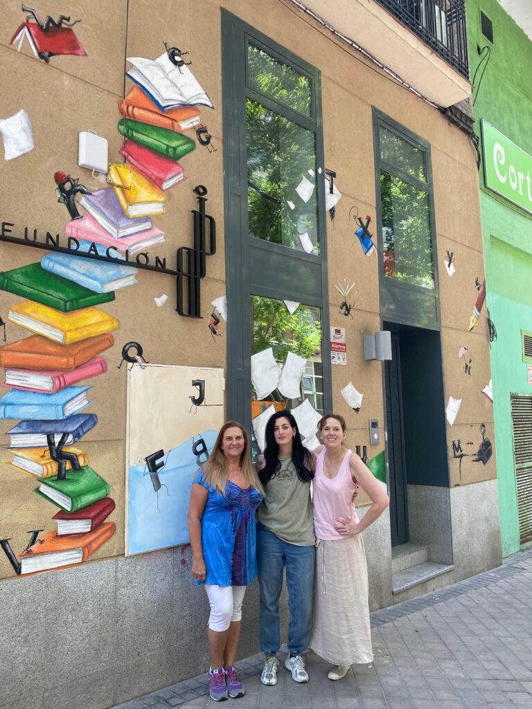 En junio, la sede de la Fundación en Madrid se transformó en un homenaje visual a la lectura gracias a la colaboración con la artista plástica Gem Díaz. Su intervención artística en la fachada —una explosión de letras y libros que recorren los muros— reivindica el valor de la lectura como motor de pensamiento, imaginación y transformación social.